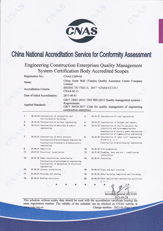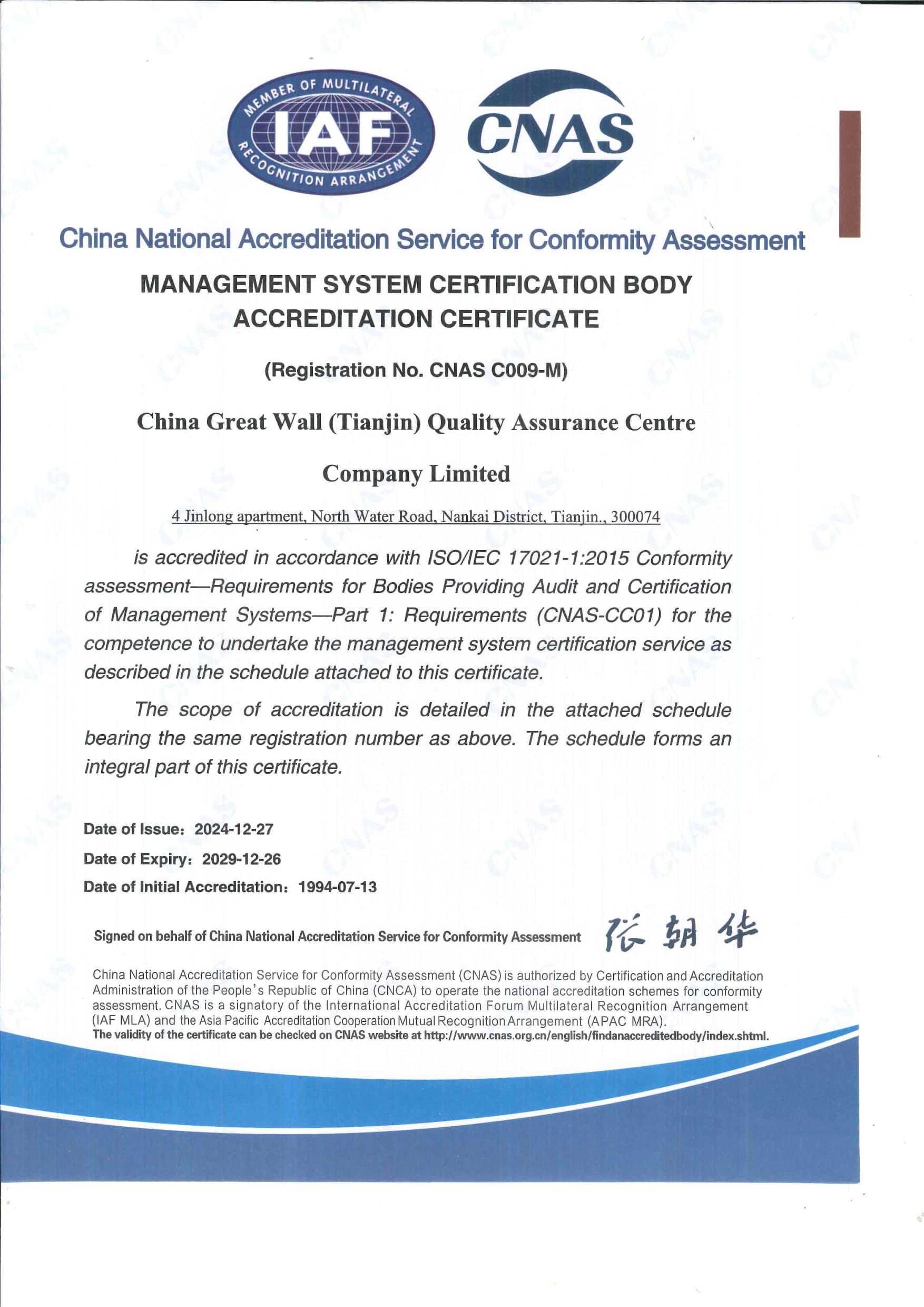 • 長城中心管理體系認(rèn)證機構(gòu)認(rèn)可證書 英文