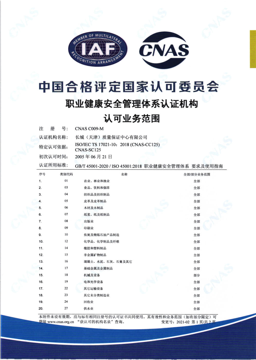 • 職業(yè)健康安全管理體系認(rèn)證機構(gòu)認(rèn)可業(yè)務(wù)范圍中文1