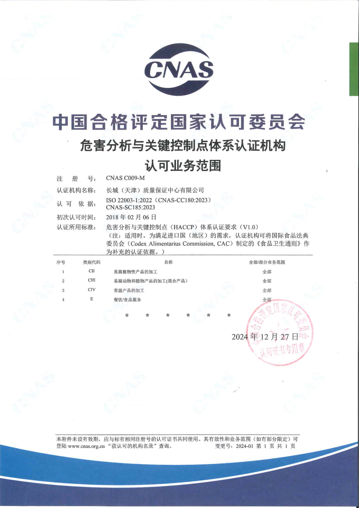 • 危害分析與關(guān)鍵控制點體系認(rèn)可范圍 中文